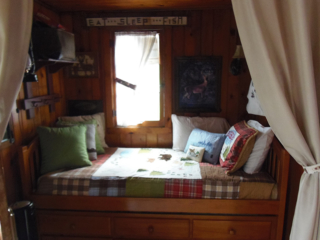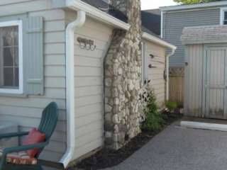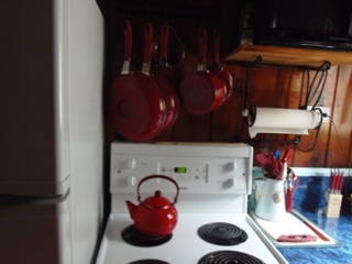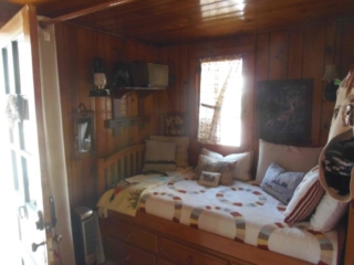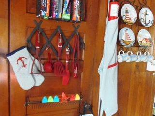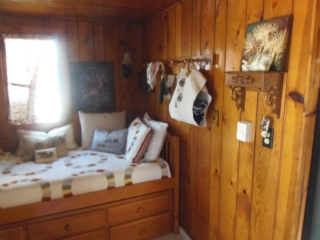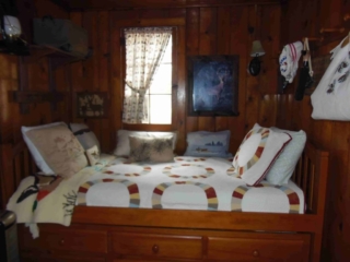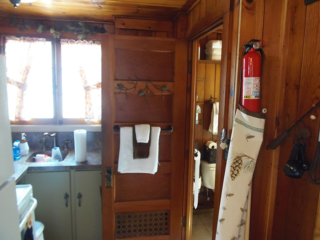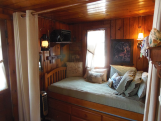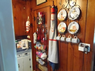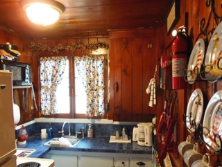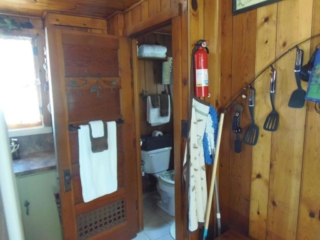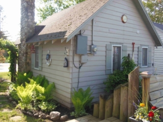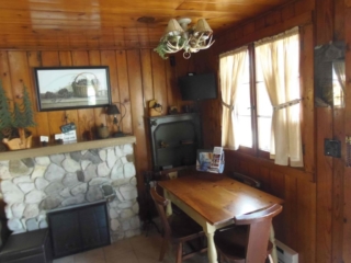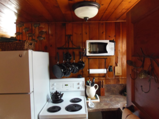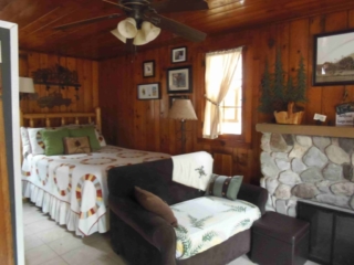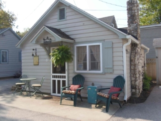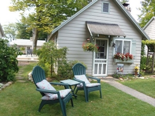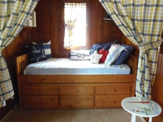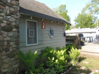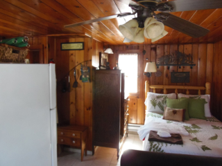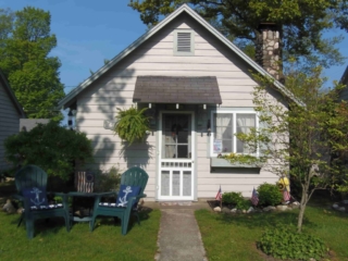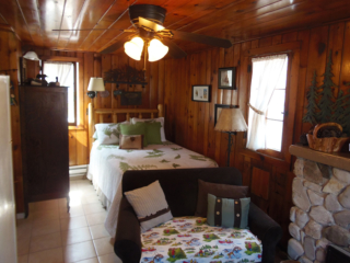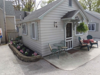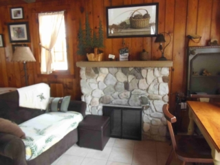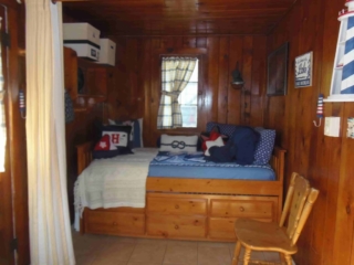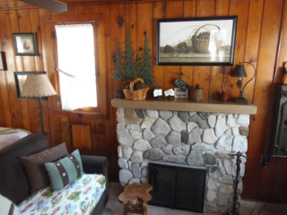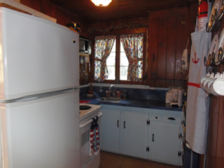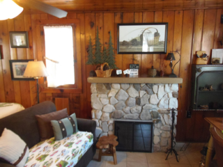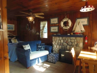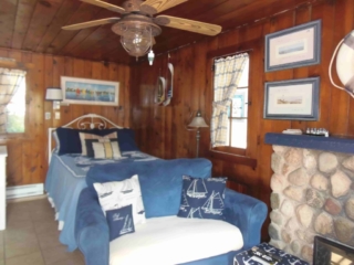 This adorable cottage has a bright and clean sailboat theme. The walls and ceiling are the original knotty pine, complete with a working field stone fireplace, updated heated ceramic floors, cozy kitchen with everything you would need. New tile in the lighted shower, a heat/light/vent in the bathroom. Very clean and well maintained. This is a non-smoking cottage. New loveseat and flat screen/DVD TV. Has key-less entry. Parking outside your door…no steps .
